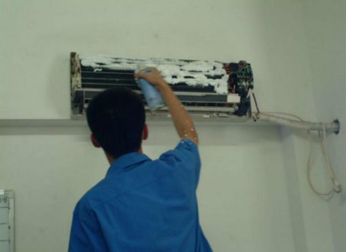 | 台安空调维修师傅给台安用户上门维修清洗空调。 |